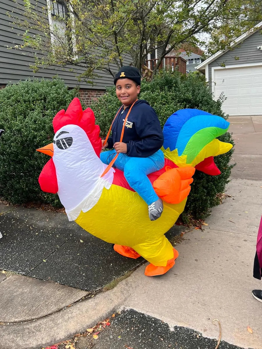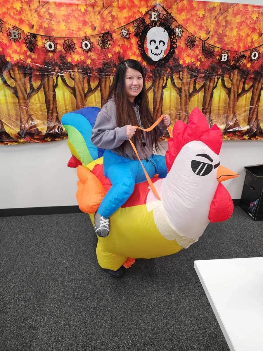 Por qué no venir a este traje inflable, es divertido y conveniente poner encendido/apagado.