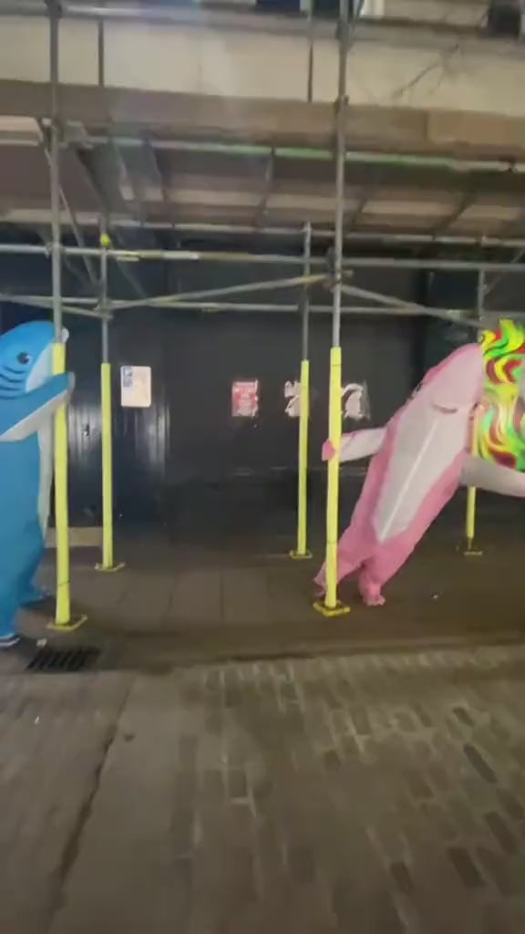 Por qué no venir a este traje inflable, es divertido y conveniente poner encendido/apagado.